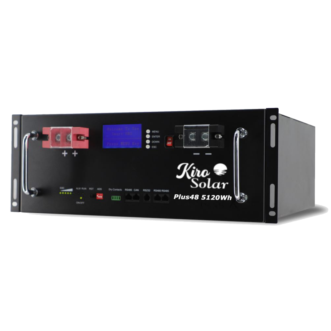 Compra online la Batería de Litio Kirosolar Plus48 5120W en nuestra tienda solar en Andalucía y tienda solar en Jaén, con envíos a toda España. Mejora tu sistema solar con esta potente batería de litio.